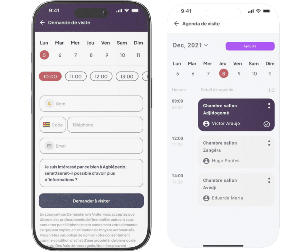 Avec Ucalendar, les prestataires et agents immobiliers simplifient la gestion de leurs biens. Planifiez vos rendez-vous, suivez les visites, administrez vos annonces et optimisez la gestion de vos propriétés en toute simplicité, grâce à une interface intuitive et accessible à tout moment.